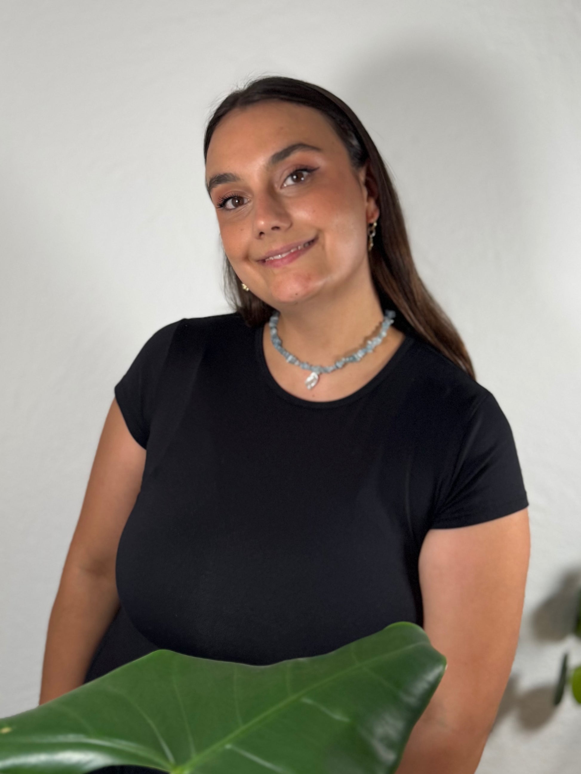 Inspiriert vom Ozean: Diese zarte Halskette besteht aus naturbelassenen Aquamarin-Steinen, die für Gelassenheit, Klarheit und Schutz stehen.