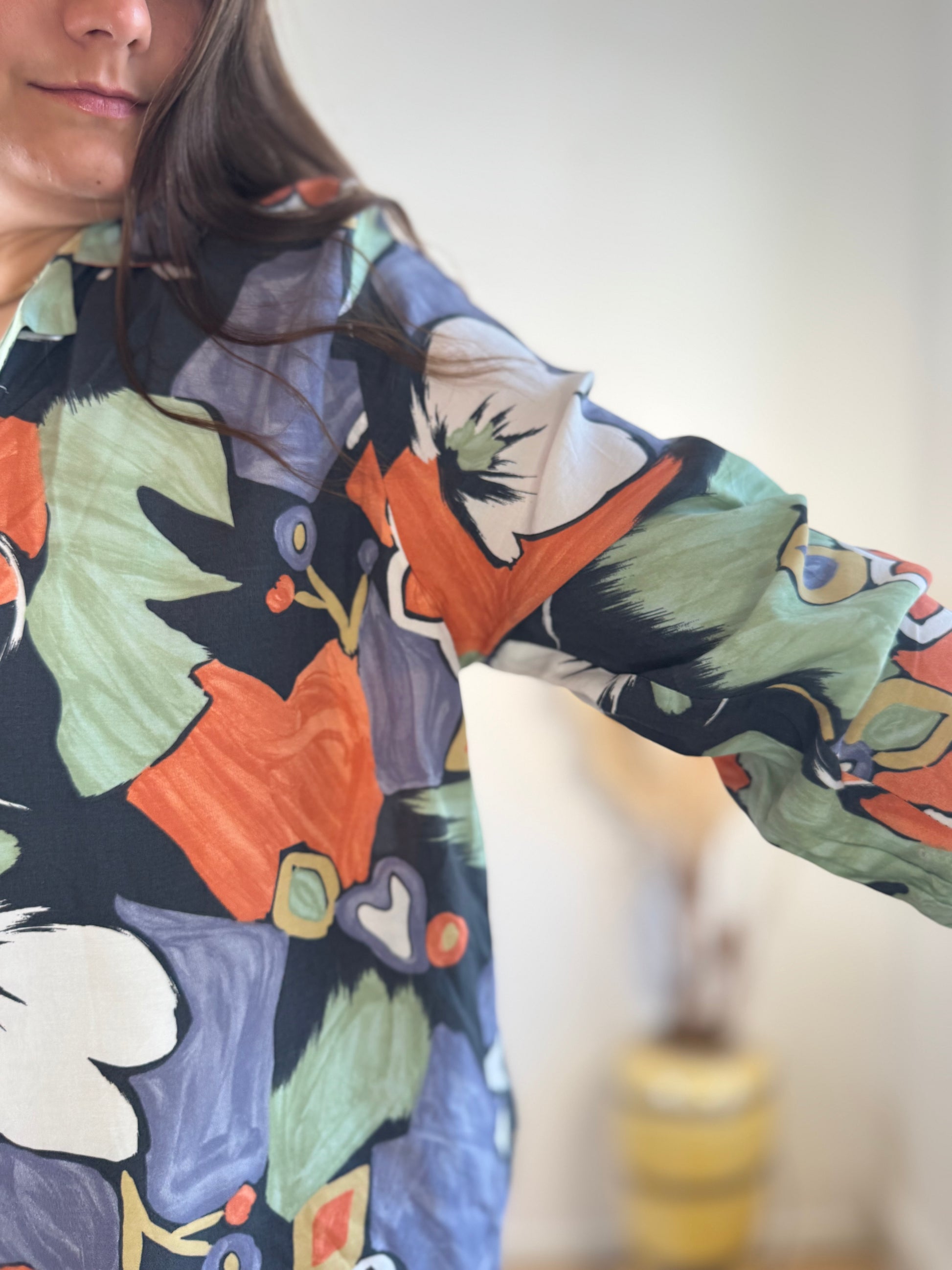 Diese Bunte Langarmbluse in Größe 44 ist das perfekte Kleidungsstück für alle, die auf der Suche nach einem farbenfrohen und stilvollen Look sind. Mit einer bequemen Passform und hochwertigen Materialien bietet sie den ganzen Tag über Komfort und einen eleganten Auftritt. Perfekt für den Büroalltag oder besondere Anlässe.