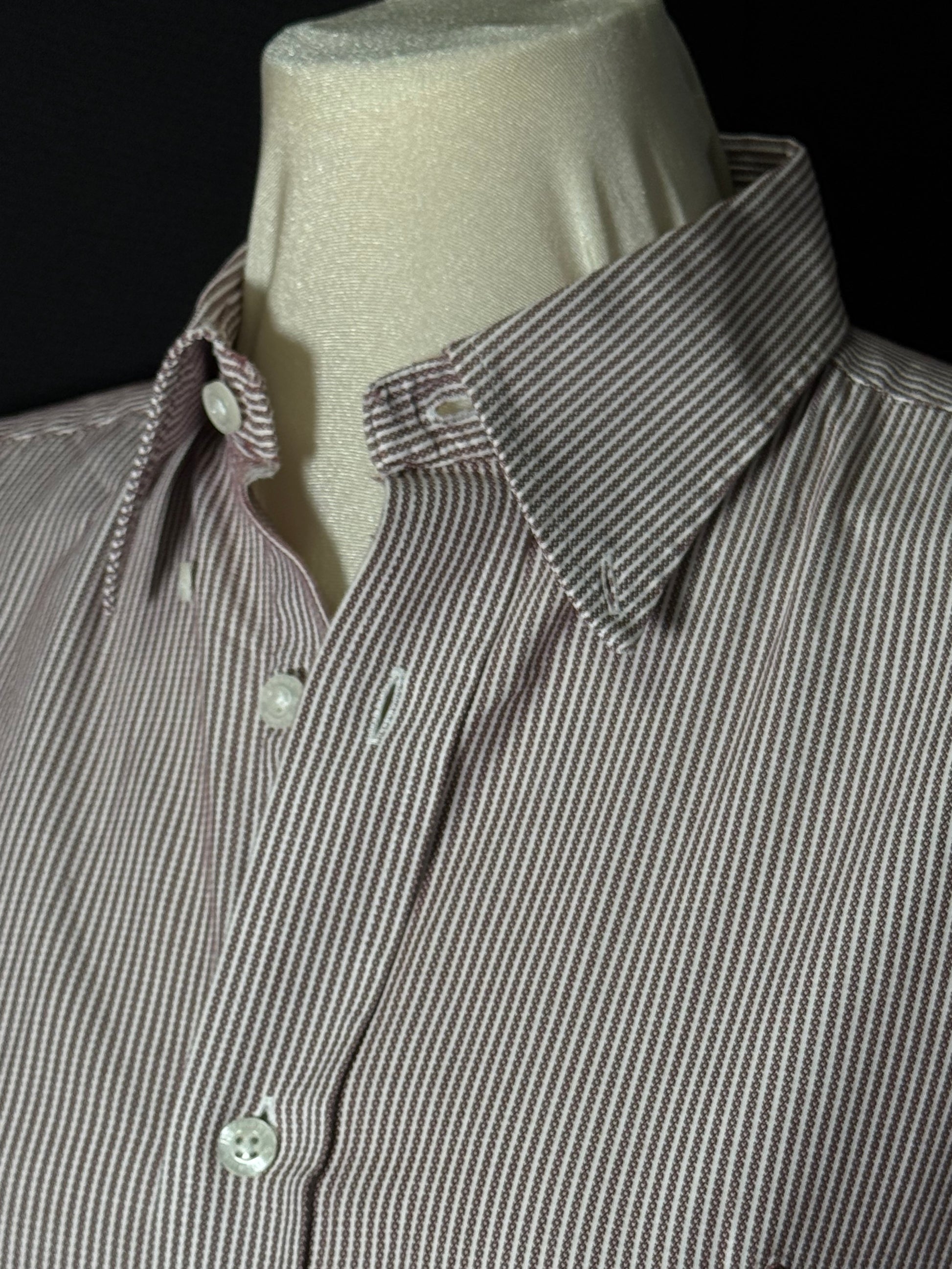 Entdecken Sie das Harmont & Blaine Hemd in einem eleganten weinroten Design mit gesticktem Dackel-Logo. Die stilvollen Berson-Streifen auf Weiß verleihen ihm einen modernen Touch. Tragen Sie es bequem in Größe M/L – perfekt für jeden Anlass! Stil und Komfort in einem!